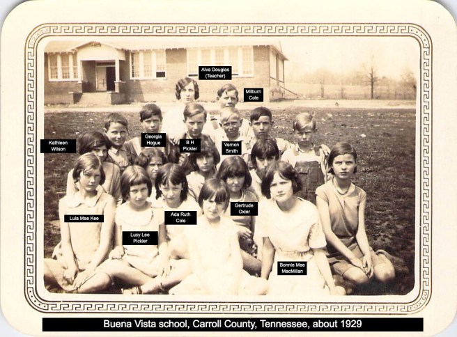 She was able to identify many of her classmates from her school days in the tiny community of Buena Vista, in Carroll County, Tennessee. Many of them were also her cousins, of course; Coles, Picklers and Oziers for a start.