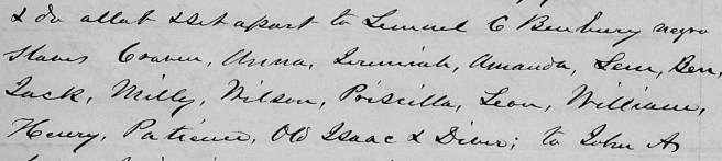 It did not take long to figure it out: looking at the 1870 census, I found Leon, Augustus, and two other black Benbury heads of families on the same page as a wealthy white man named Lemuel Benbury. He was also found on the 1860 with a net worth five times of his worth in 1870, indicating a slaveholder. Ancestry trees showed him as the son of a Thomas Benbury: this was confirmed by a probate file helpfully posted to his profile by another user. The probate file also included a letter (PDF here) dividing Thomas Benbury’s slaves amongst his heirs, the names included many of those found on the same page as Lemuel in 1870 as well as others found in Vine Oak Cemetery.