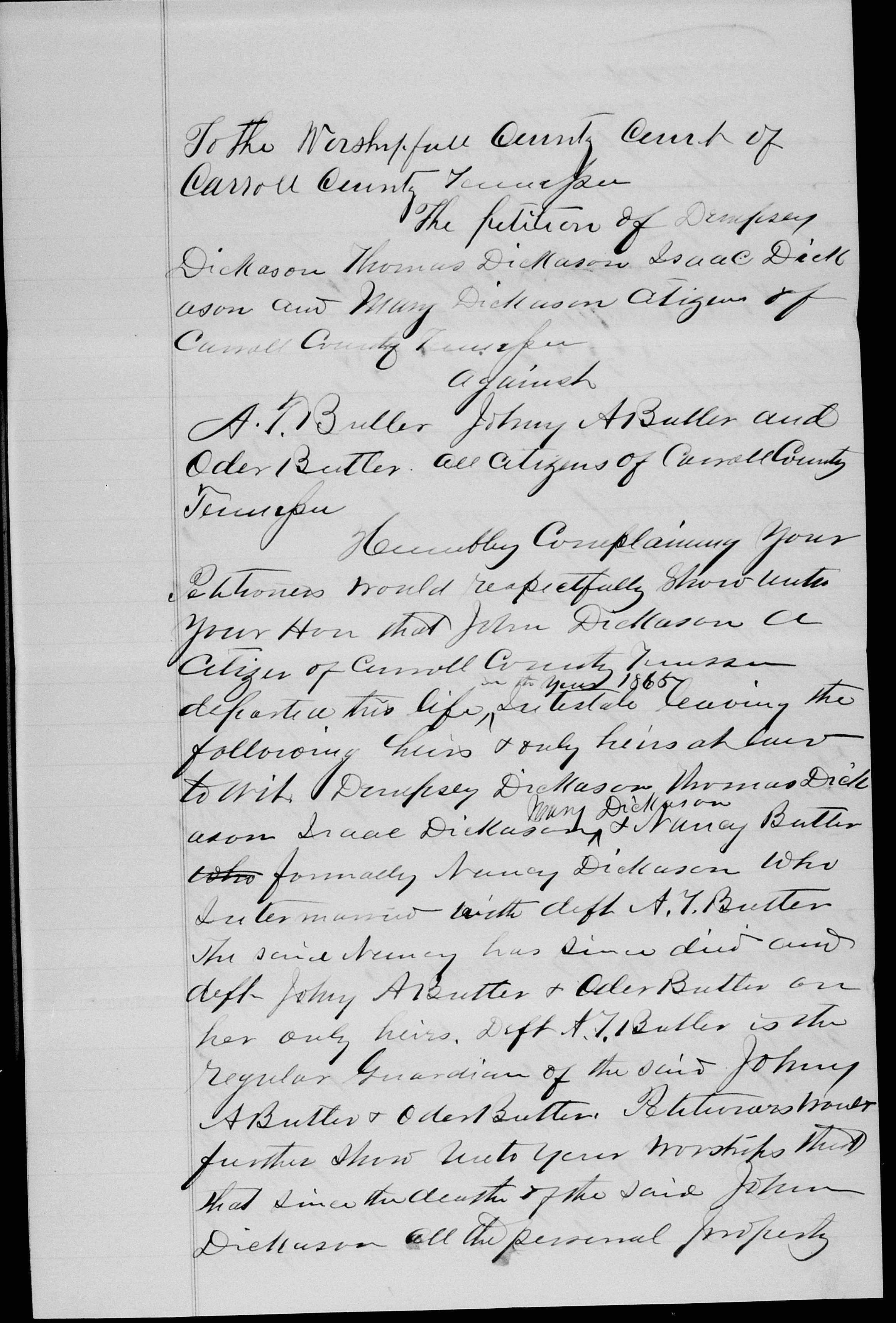 Years ago, I had traced my maternal Dickerson lineage back to my 4th great-grandfather, a John Dickerson who lived in Benton and Carroll counties, Tennessee. I knew that he was from North Carolina, and I figured he was very likely the John “Dickinson” on the 1820 and 1830 censuses in Wayne County. The name, age, and children all matched up. But that’s as far as I got.