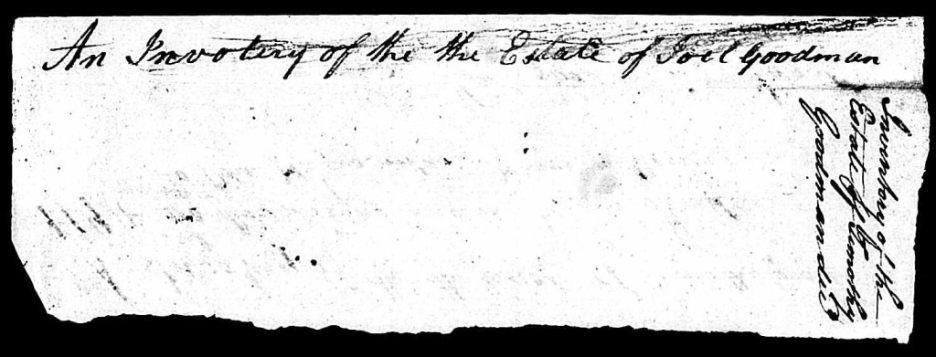 In what is probably not a coincidence, the incomplete estate file of a Timothy Goodman from Gates County includes a note on one of the pages about “the inventory of the estate of Joel Goodman.” It almost looks like Timothy and Joel are the same person, but there is nothing else to indicate this. Still given that Timothy was given as a middle name to boys in more than one generation of Goodmans, it may be that there was a Joel Timothy Goodman.
