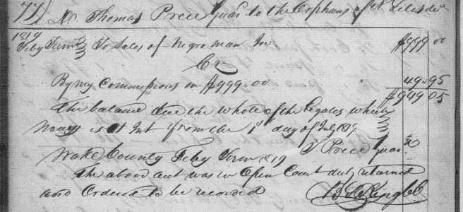 Kinchen Liles was my 5th great-grandfather. He died in 1813 in Wake County, North Carolina. The paper trail on his probate shows one way in which enslaved people were used as an income stream for slaveholders. Kinchen was around 47 when he died, apparently unexpectedly, as he left no will. Kinchen left behind a wife, … Continue reading Kinchen Liles and a man named Joe